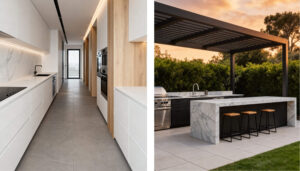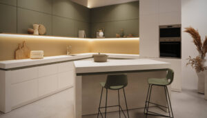 Muebles de cocina, encimeras, islas, penínsulas, frontales de cocina, fregaderos integrados, cocinas abiertas, cocinas exteriores, espacios showcooking, campanas revestidas con cerámica, coffee corners, cocinas ocultas.